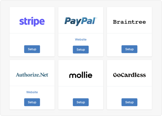 When you email out an invoice, it’s a ‘payment gateway’ that processes the payment. Invoice Ninja integrates payment gateways across the world, allows your clients to pay an invoice in 1-click!