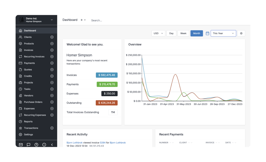 With Invoice Ninja, all your earnings, expenses, clients and vendors are stored and managed in one, smart system designed to keep you on top of things.