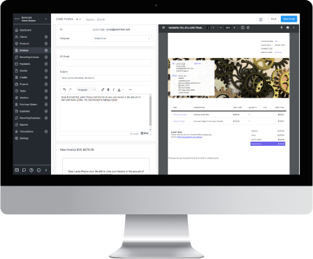 You can email invoices, quotes, & payment reminders via your Gmail or MSN accounts! This ensures that your clients experience a truly branded experience and see your company name only!