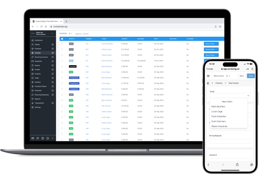 Invoice Ninja software suites are fast, free, and straightforward without any specialist accountancy knowledge needed to get stuck in. You can easily send invoices and manage payments with our online invoicing solution. Choose from multiple currencies and languages for overseas customers, set up automatic reminders for late payers, and transform quotes into invoices at the touch of a button.